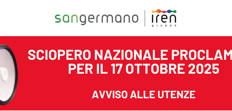 San Germano – Gruppo Iren informa i cittadini che in data odierna giovedì 16 ottobre 2025, a causa di un…